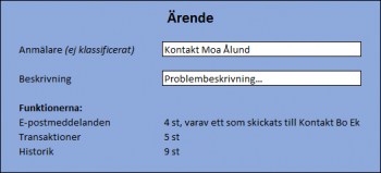 Följande funktioner har vi valt att klassificera i ärendemodulen: